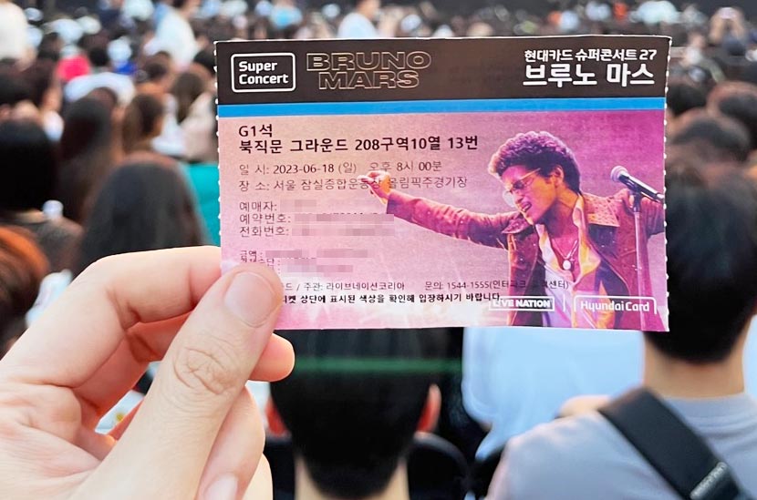 노래와 춤 모두 다 되는 완벽한 퍼포먼스로 제2의 마이클 잭슨으로 불리는 브루노 마스의 9년 만의 내한 공연이 2023년 6월 진행됐다. 이번 공연을 놓치면 브루노 마스가 언제 한국에 다시 올지도 모르고, 설령 온다고 해도 나도 가수도 더 나이가 들 테니, 기량이 지금과 같진 않을 거란 생각에 정말 간절하게 가고 싶었다. 본 티켓팅 기간에는 실패했지만, 취겟팅(취소표를 티켓팅하는 것)으로 무대 가까운 중앙자리(스탠딩이라고 불리는 그라운드 좌석) 예매에 성공했다. 그것도 3연석으로! 남동생과 티켓팅에 실패해 슬퍼하고 있는 같은 부서 동료를 데려갔는데 둘 다 역대급 공연이었다고 말해주고 진심으로 고마워해 오히려 내가 더 고마웠다.